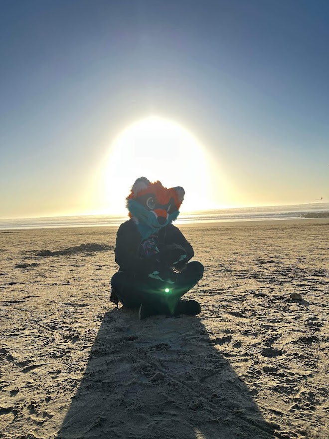 Another big thing about the furry community is the use of characters/art that people can use to either represent or express themselves within. These characters(also known as a fursona) are gerally completely unique and designed by whoever uses them. Within this character someone might show their ideal self and use it to interact with others online almost like a personal mascot. Some people even buy art of their character doing things that they might personally enjoy like snowboarding, hiking, driving or even sitting in front of a computer. Another thing some people do is make/buy a suit of their character also referred to as a Fursuit. This is another way for them to express themselves as their character, for example someone with anxiety/issues with public events might be more confident and social when in their suit as they are playing a character and it not actually be them.